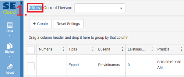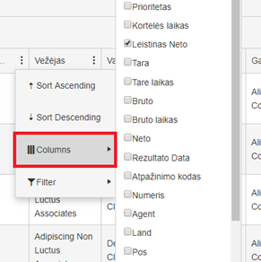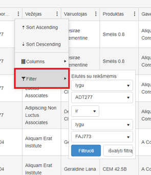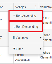 Press three dots on column that you want to perform sorting. In this case “Transporto priemonė“