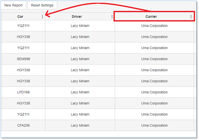 Choose the column which you want to move, press on column name and drag to the desired place.