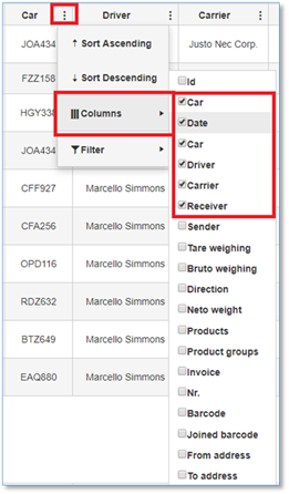 According to your requirements, you can customize which columns you want to see. Press the button with three dots near a column name, then choose “Columns” and mark the columns names which you want see.