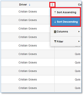 In the column you want to sort, press the button with three dots . From the drop-down list, select the “Sort Ascending” or “Sort Descending”.