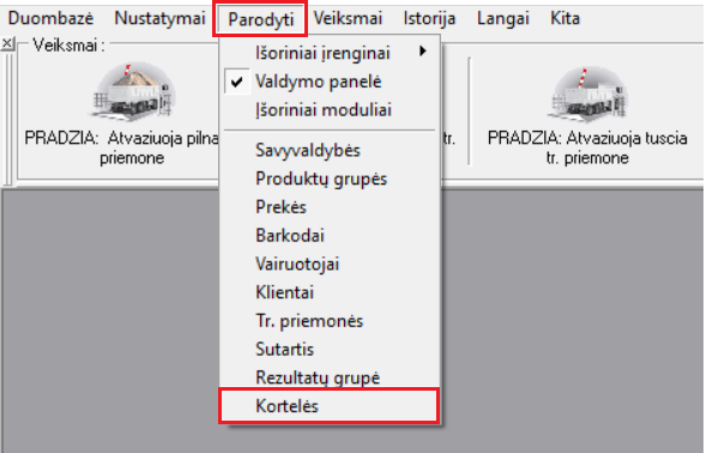 Norėdami pridėti kortelę, viršutinėje juostoje spaudžiame mygtuką „Parodyti“, iš sąrašo pasirenkame „Kortelės“.