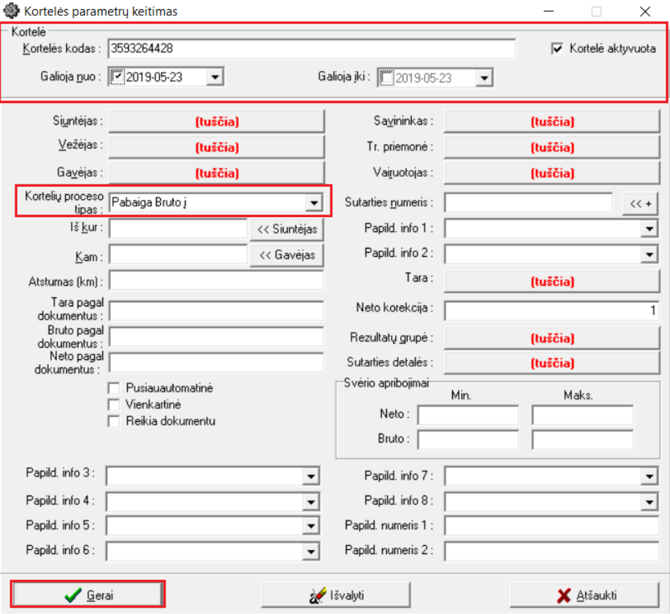 1. Užsipildo taros/bruto (šiuo atveju bruto) svorio langas (17 pav.);