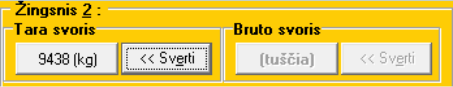 1. Esant pasvertai tarai, spaudžiamas mygtukas „Sverti“ šalia bruto svorio lango, esant pasvertam bruto – šalia taros svorio lango (šiuo atveju šalia bruto) (16 pav.);