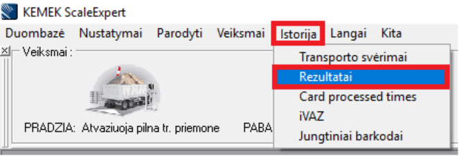 Viršuje esančiame meniu spaudžiame ant užrašo „Istorija“ iš sąrašo pasirenkame „Rezultatai“.